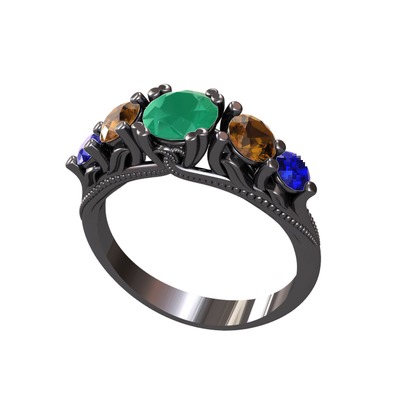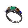 Kök zümrüt, dumanlı kuvars ve lab safir 925 ayar siyah rodyum kaplama gümüş yüzük