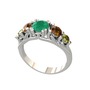 Kök zümrüt, dumanlı kuvars ve peridot 8 ayar beyaz altın yüzük