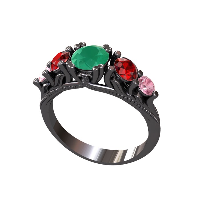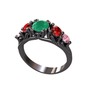 Kök zümrüt, garnet ve pembe kuvars 925 ayar siyah rodyum kaplama gümüş yüzük