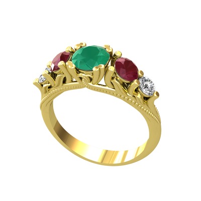 Kök zümrüt, kök yakut ve swarovski 925 ayar altın kaplama gümüş yüzük