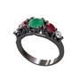 Kök zümrüt, kök yakut ve swarovski 925 ayar siyah rodyum kaplama gümüş yüzük