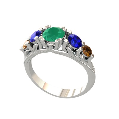 Kök zümrüt, lab safir ve dumanlı kuvars 18 ayar beyaz altın yüzük