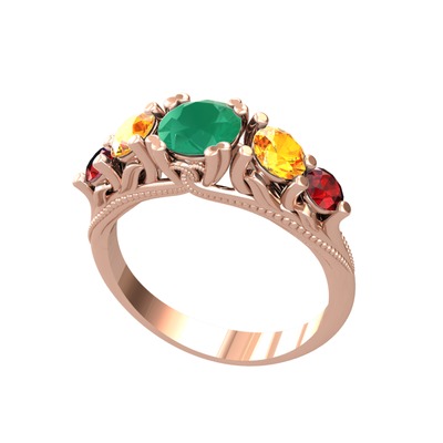 Kök zümrüt, sitrin ve garnet 18 ayar rose altın yüzük