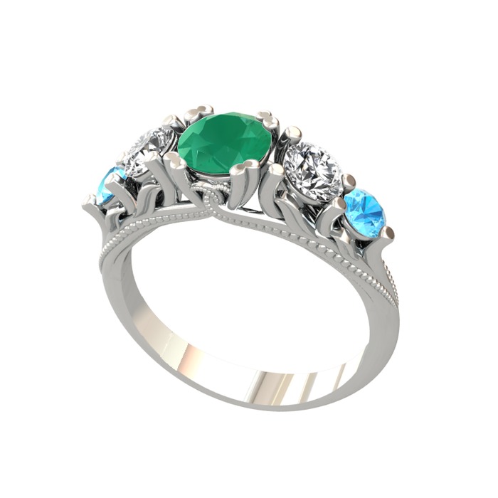 Kök zümrüt, swarovski ve akuamarin 925 ayar gümüş yüzük