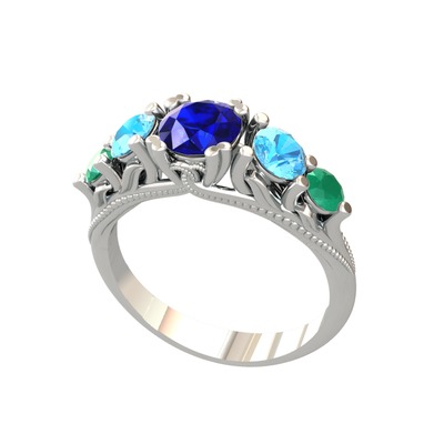 Lab safir, akuamarin ve kök zümrüt 18 ayar beyaz altın yüzük