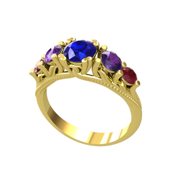 Lab safir, ametist ve kök yakut 8 ayar altın yüzük