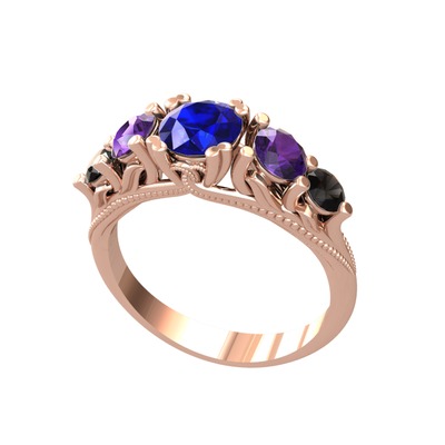 Lab safir, ametist ve siyah zirkon 925 ayar rose altın kaplama gümüş yüzük