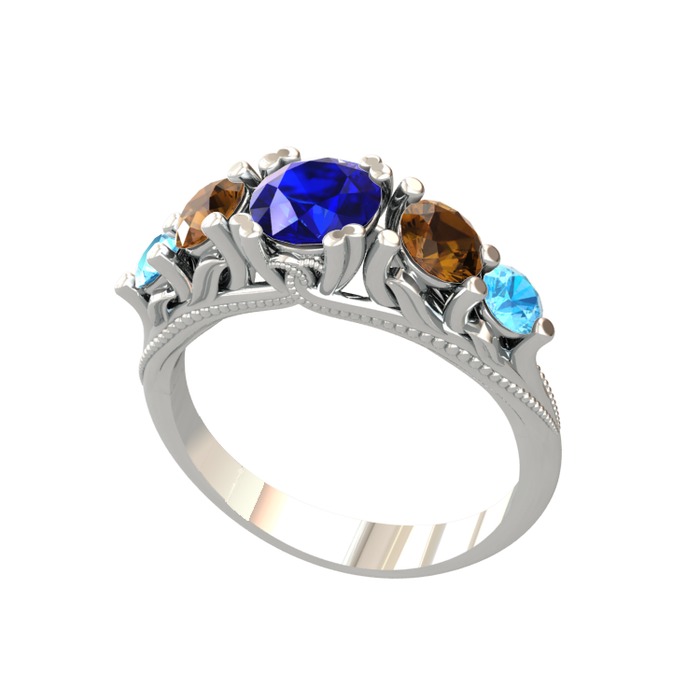 Lab safir, dumanlı kuvars ve akuamarin 18 ayar beyaz altın yüzük