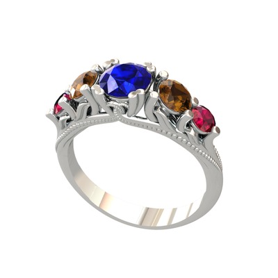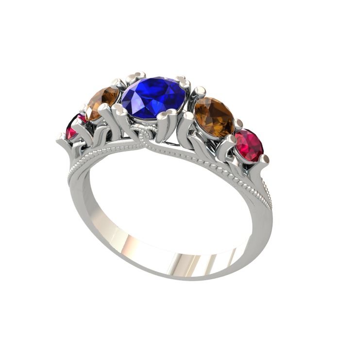 Lab safir, dumanlı kuvars ve rodolit garnet 14 ayar beyaz altın yüzük
