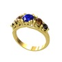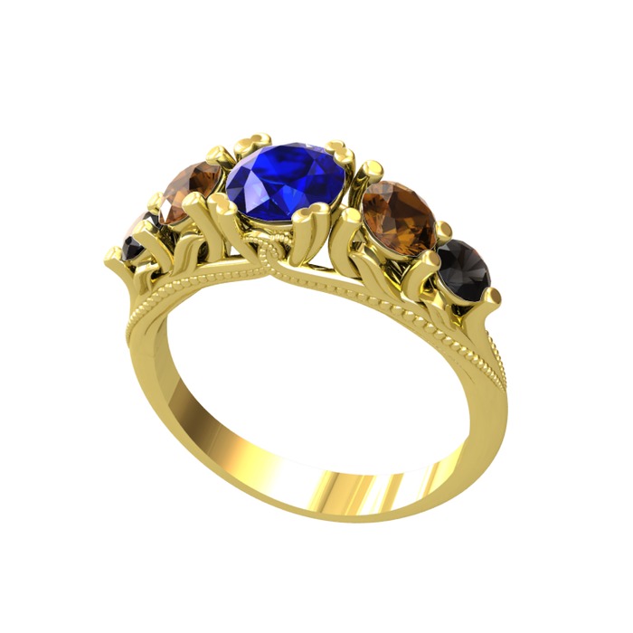 Lab safir, dumanlı kuvars ve siyah zirkon 8 ayar altın yüzük