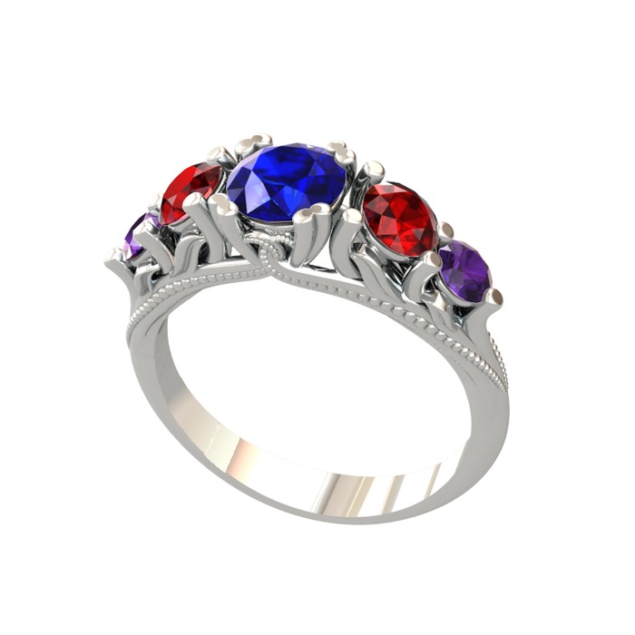 Lab safir, garnet ve ametist 14 ayar beyaz altın yüzük