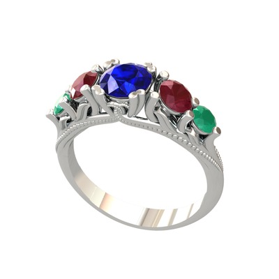 Lab safir, kök yakut ve kök zümrüt 18 ayar beyaz altın yüzük