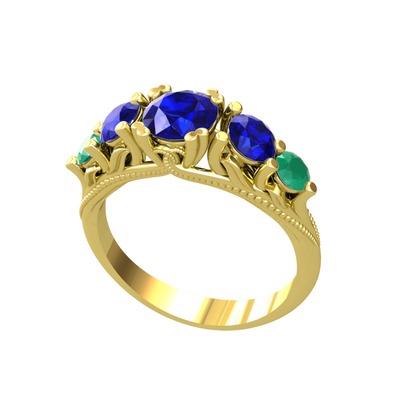 Lab safir ve kök zümrüt 925 ayar altın kaplama gümüş yüzük