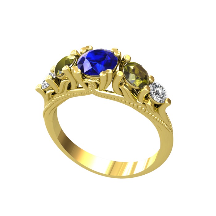 Lab safir, peridot ve beyaz zirkon 14 ayar altın yüzük