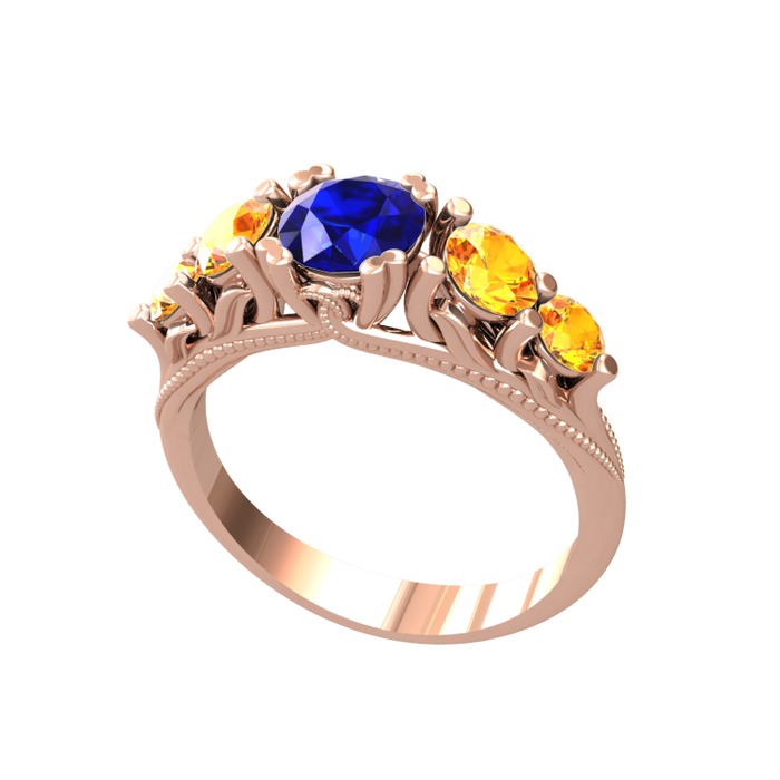 Lab safir ve sitrin 8 ayar rose altın yüzük