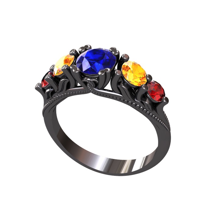 Lab safir, sitrin ve garnet 925 ayar siyah rodyum kaplama gümüş yüzük