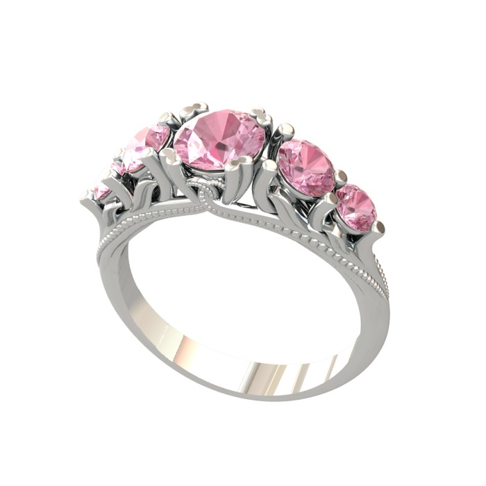 Pembe kuvars 8 ayar beyaz altın yüzük