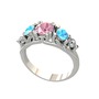 Pembe kuvars, akuamarin ve swarovski 18 ayar beyaz altın yüzük