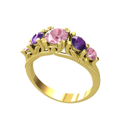 Pembe kuvars ve ametist 925 ayar altın kaplama gümüş yüzük