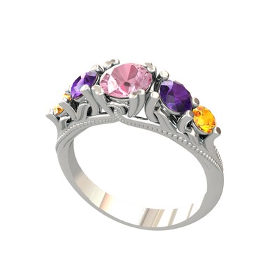 Pembe kuvars, ametist ve sitrin 14 ayar beyaz altın yüzük