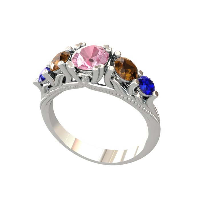 Pembe kuvars, dumanlı kuvars ve lab safir 18 ayar beyaz altın yüzük