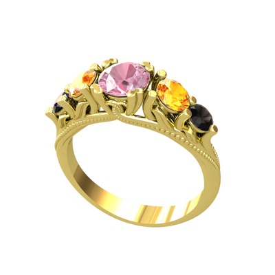 Pembe kuvars, sitrin ve siyah zirkon 925 ayar altın kaplama gümüş yüzük