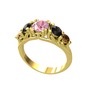 Pembe kuvars, siyah zirkon ve dumanlı kuvars 925 ayar altın kaplama gümüş yüzük