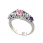 Pembe kuvars, swarovski ve ametist 14 ayar beyaz altın yüzük