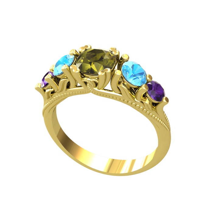 Peridot, akuamarin ve ametist 925 ayar altın kaplama gümüş yüzük