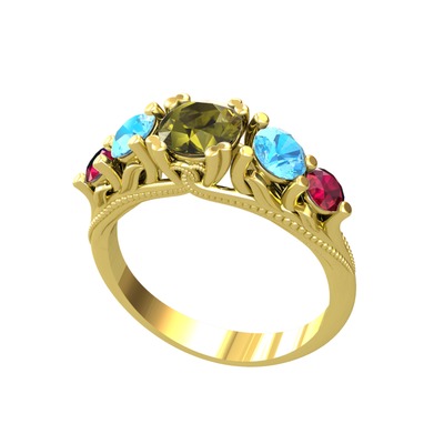 Peridot, akuamarin ve rodolit garnet 14 ayar altın yüzük