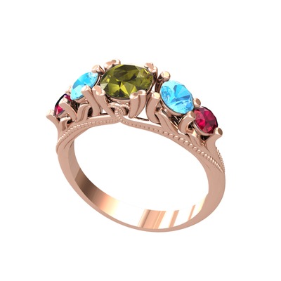 Peridot, akuamarin ve rodolit garnet 925 ayar rose altın kaplama gümüş yüzük