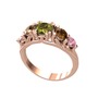 Peridot, dumanlı kuvars ve pembe kuvars 18 ayar rose altın yüzük