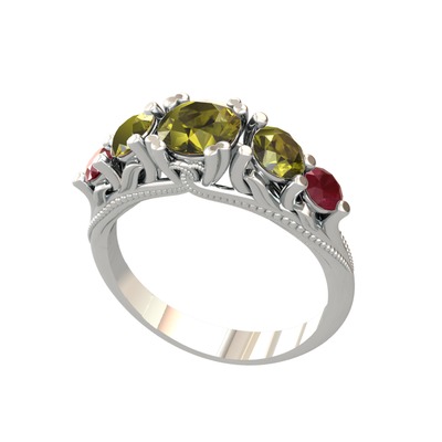 Peridot ve kök yakut 925 ayar gümüş yüzük