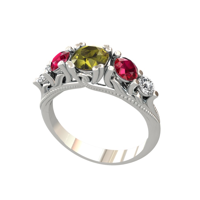 Peridot, rodolit garnet ve swarovski 925 ayar gümüş yüzük