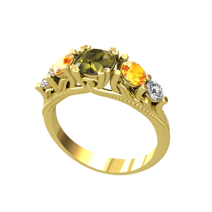 Peridot, sitrin ve swarovski 14 ayar altın yüzük