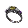 Peridot, swarovski ve ametist 925 ayar siyah rodyum kaplama gümüş yüzük