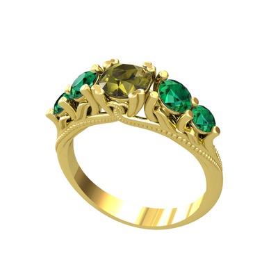 Peridot ve yeşil kuvars 18 ayar altın yüzük