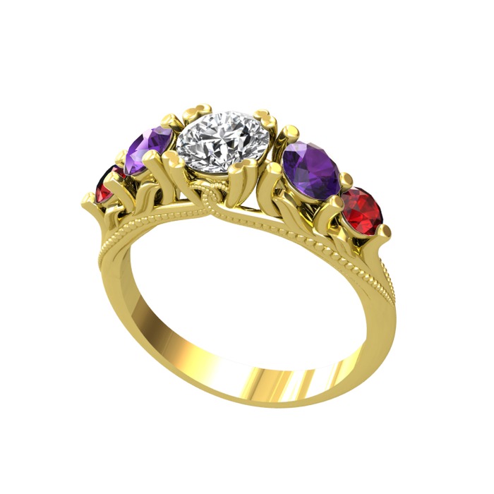 Pırlanta, ametist ve garnet 14 ayar altın yüzük (0.92 karat)