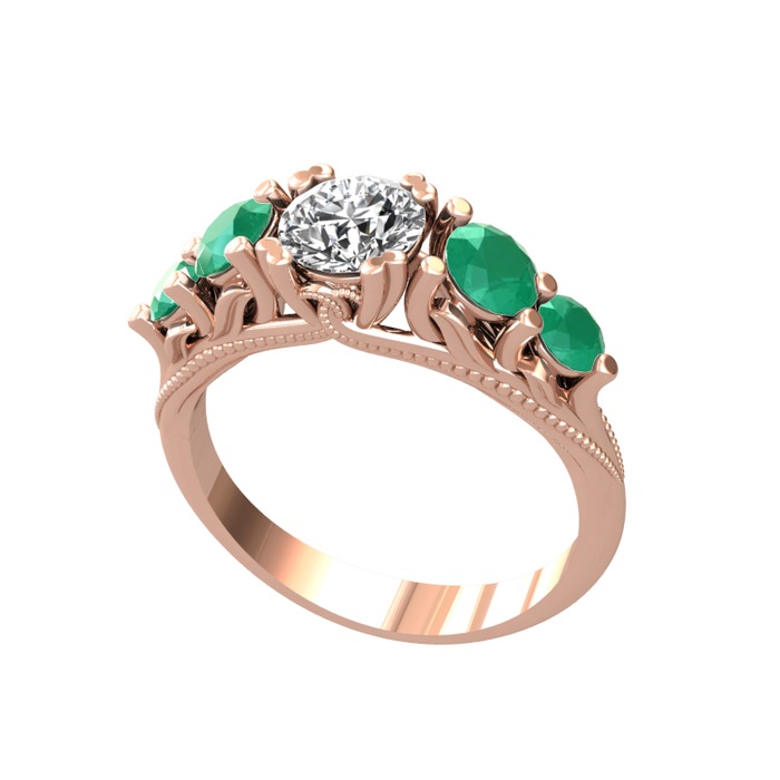 Pırlanta ve kök zümrüt 14 ayar rose altın yüzük (0.92 karat)