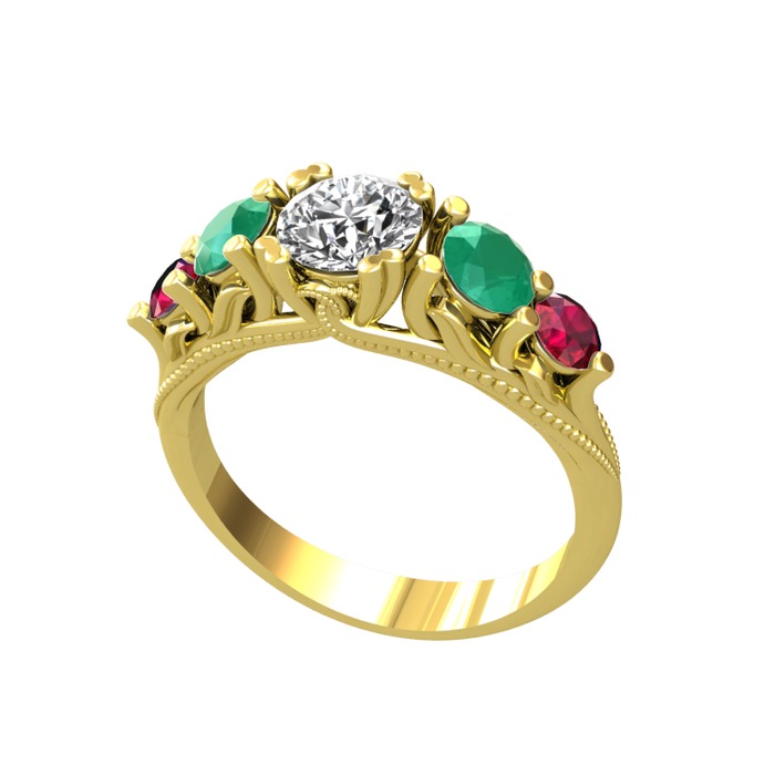 Pırlanta, kök zümrüt ve rodolit garnet 925 ayar altın kaplama gümüş yüzük (0.92 karat)