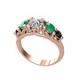 Pırlanta, kök zümrüt ve siyah zirkon 14 ayar rose altın yüzük (0.92 karat)