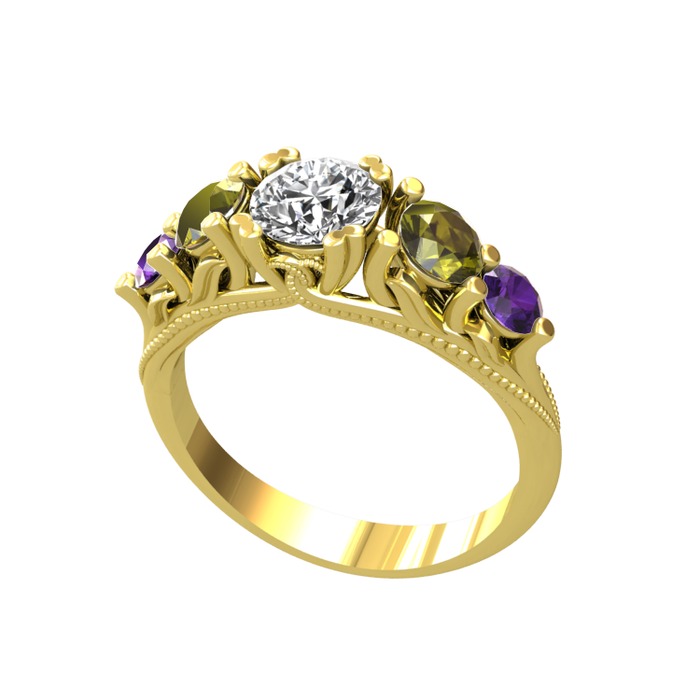 Pırlanta, peridot ve ametist 14 ayar altın yüzük (0.92 karat)