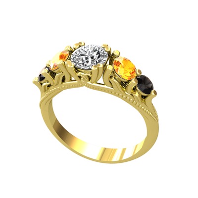 Pırlanta, sitrin ve siyah zirkon 18 ayar altın yüzük (0.92 karat)