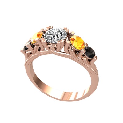 Pırlanta, sitrin ve siyah zirkon 925 ayar rose altın kaplama gümüş yüzük (0.92 karat)