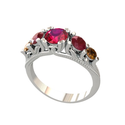 Rodolit garnet, kök yakut ve dumanlı kuvars 18 ayar beyaz altın yüzük