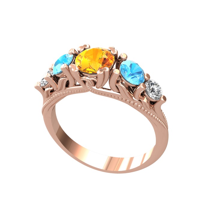 Sitrin, akuamarin ve pırlanta 8 ayar rose altın yüzük (0.36 karat)