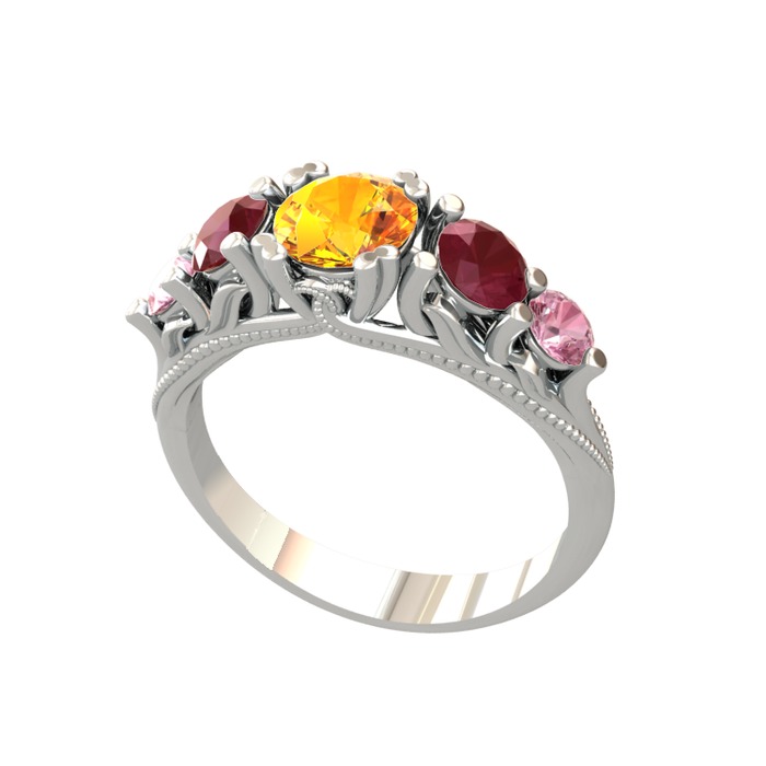 Sitrin, kök yakut ve pembe kuvars 925 ayar gümüş yüzük