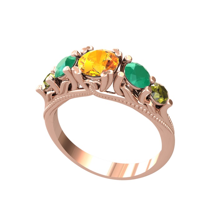 Sitrin, kök zümrüt ve peridot 8 ayar rose altın yüzük
