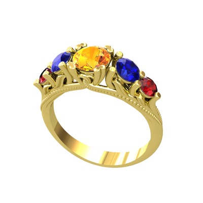 Sitrin, lab safir ve garnet 18 ayar altın yüzük