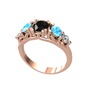 Siyah zirkon, akuamarin ve pırlanta 925 ayar rose altın kaplama gümüş yüzük (0.36 karat)
